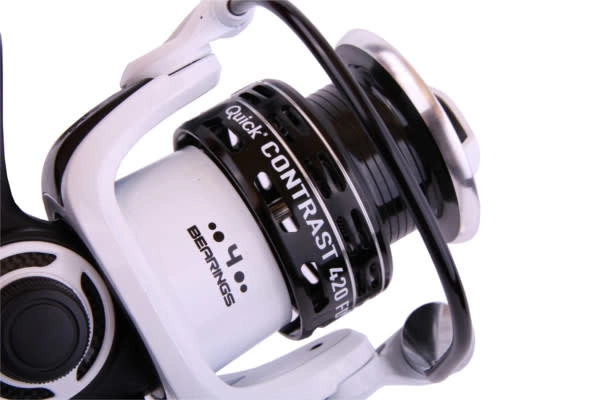 De Quick Contrast is een schitterende spinmolen die niet alleen opvalt door zijn blitse looks maar ook door zijn prestaties! De Contrast is voorzien van 3 kogellagers en loopt enorm soepel. De molen beschikt over een aluminium spoel, aluminium slinger en een ergonomische Soft-Touch slingerknop. De Quick Contrast is allround inzetbaar voor alle visserijen in onze wateren.