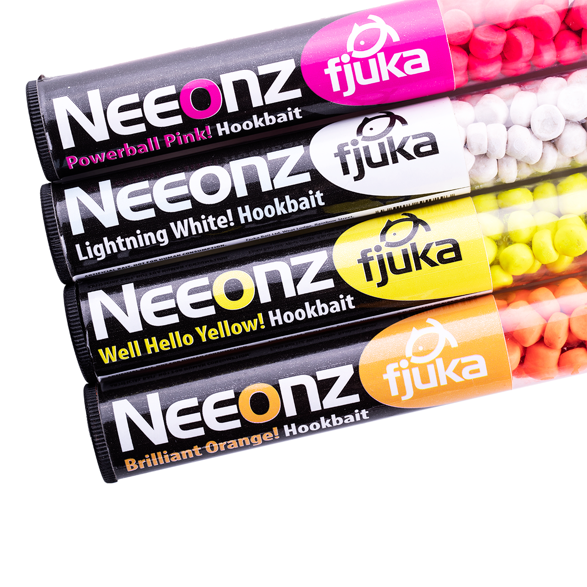 Fjuka Neeonz fluoro hookbait haakt direct. Geen boren, spikes, banden of andere voorbereidingen; je bent klaar om te vissen op het moment dat je de oever raakt. Elk van de Fjuka Neeonz hyper-flouro, neon-verzadigde kleuren geven een uitstekende zichtbaarheid onder water om de aandacht te trekken van je doelsoorten op meren, rivieren en kanalen. Fjuka Neeonz zijn verzadigd met Sensate™ gemicroniseerde lokstoffen die 3000 X de beschikbare smaak en aroma’s bieden van gewone lokstoffen. Alle Fjuka Bait kan worden gekneed om maden, maïs of wormen te imiteren, of worden gecombineerd om groter, helderder aas te produceren en grotere soorten aan te trekken. Fjuka Neeonz zijn onweerstaanbaar voor zeelten en exemplaren zoals karper, brasem, vlagzalm, rietvoorn, zeelt, forel, F1’s & crucians. Zonder tijdrovende voorbereiding plus de vangkracht van hyper-flouro en Sensate™ Micronised Attractants – pak gewoon een tube en ga vissen.